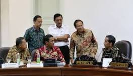 Presiden Jokowi Akan Panggil Menteri yang Gaduh Presiden Jokowi (kanan) berdiskusi dengan (kiri-kanan) Menko Perekonomian, Darmin Nasution, Menteri Perdagangan, Thomas Lembong, Menteri ...