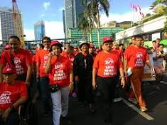 Menteri ESDM Kampanye Hemat Energi 10 Persen di CFD Menteri ESDM Sudirman Said berkampanye hemat energi 10 persen di car free day Bundaran HI, Minggu (15/5). MTVN/Ilham Wibowo.
